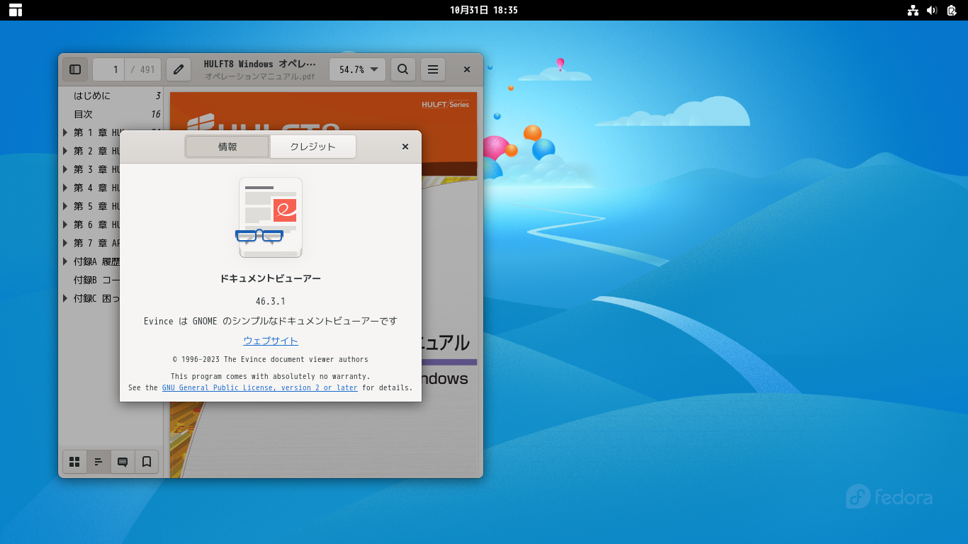 Fedora - 41 - GNOME - ドキュメントビューア Evince