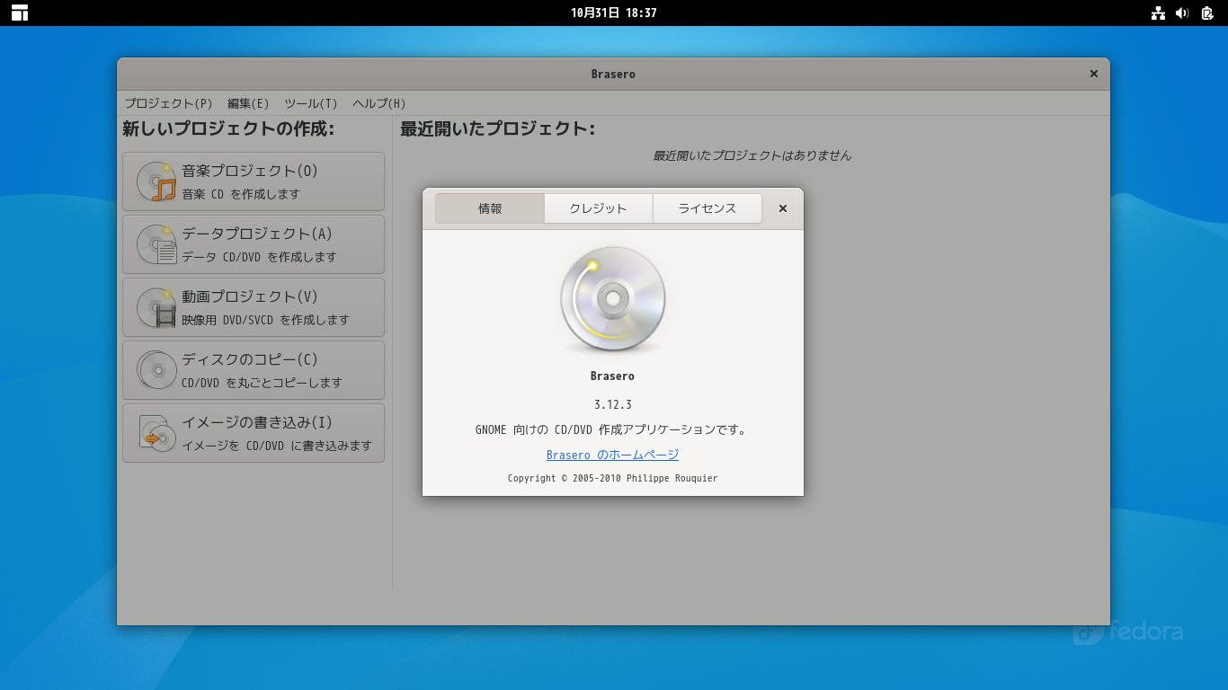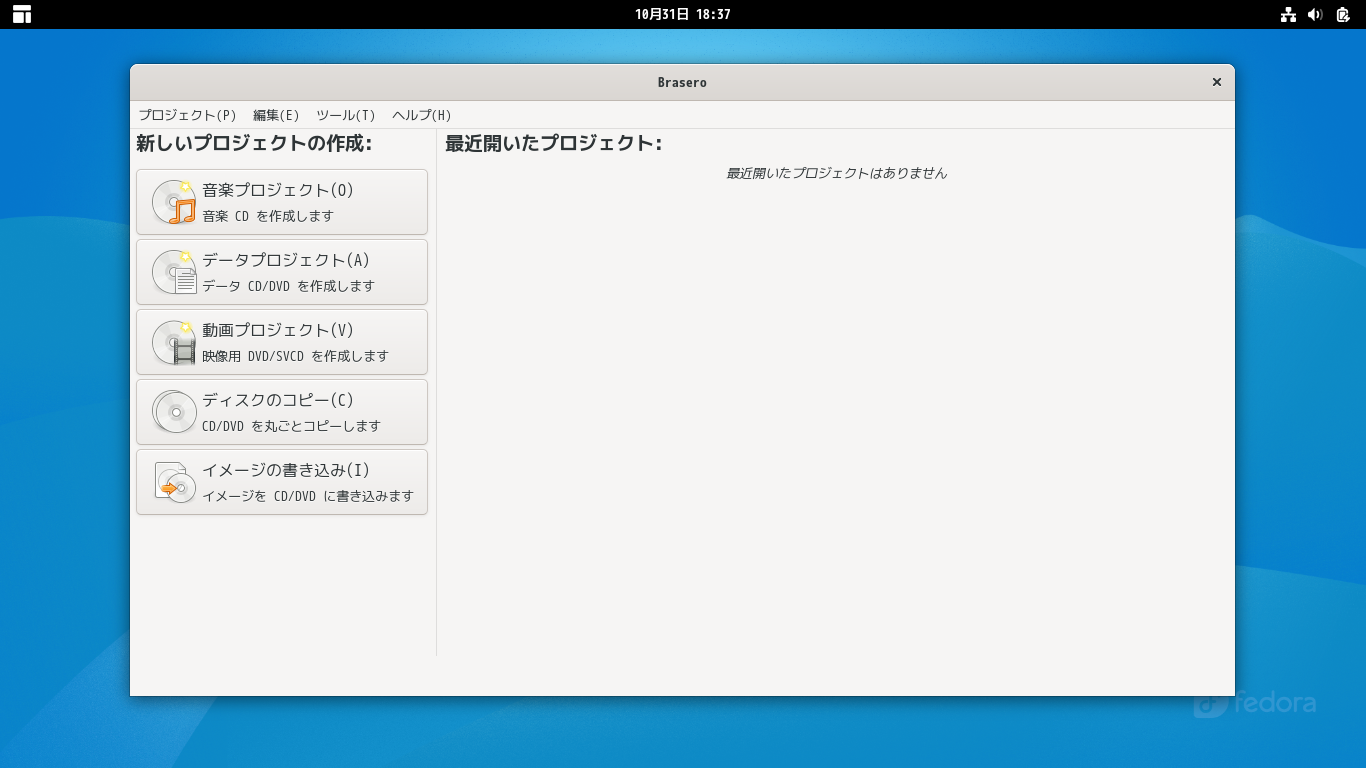 Fedora - 41 - GNOME - 光ディスクライティング Brasero