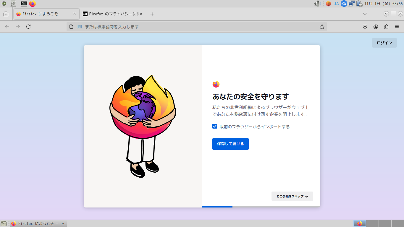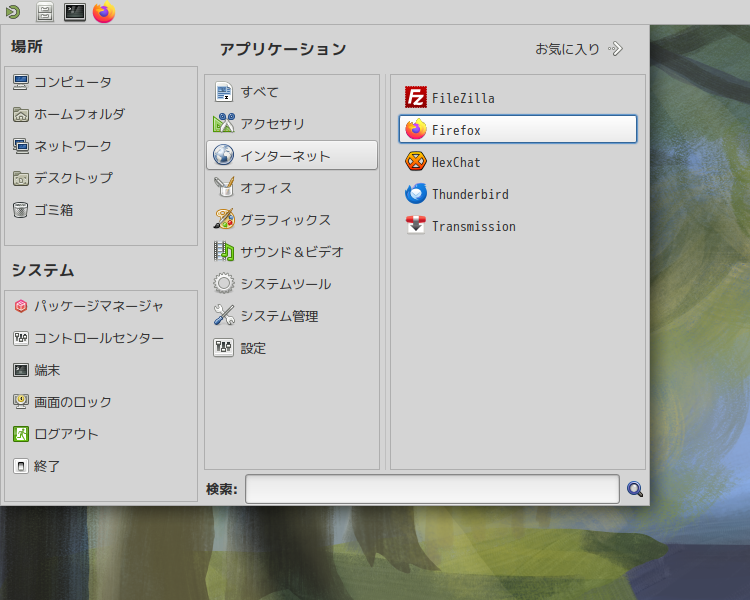 1. 概要 ブラウザとして、「Firefox」がデフォルトでインストールされており、日本語化もされていますので、そのまま使います。 2. 起動 「スタート」→「インターネット」→「Firefox」