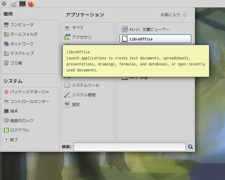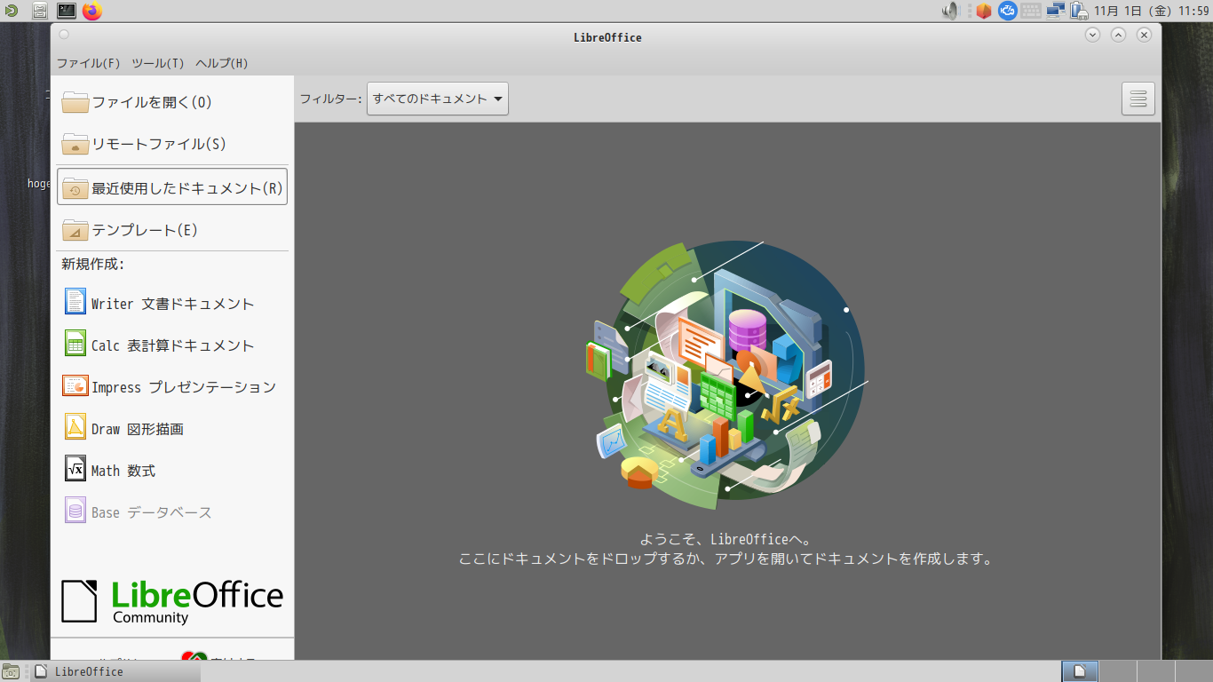 「LibreOffce」はデフォルトでインストールされていますが、日本語化されていません。