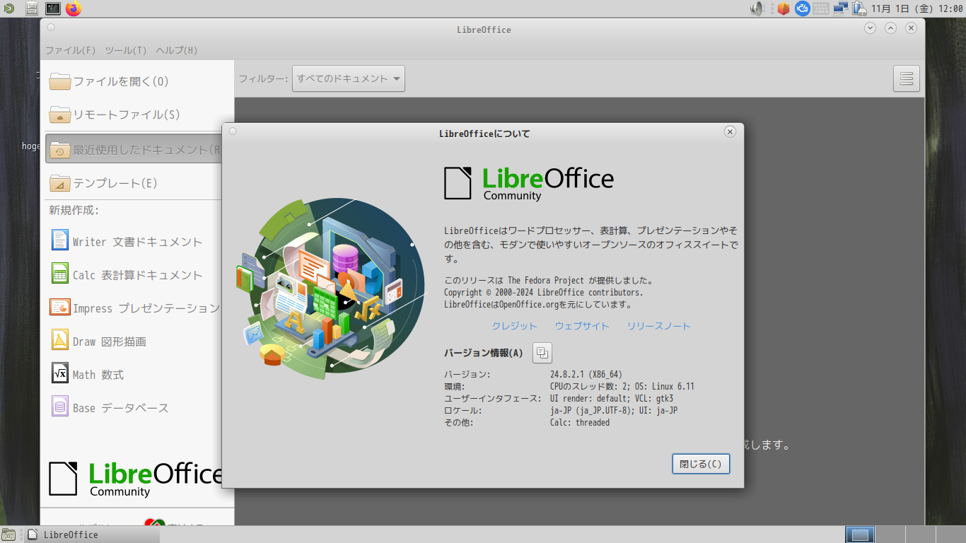 Fedora - 41 - MATE - オフィススイート LibreOffice