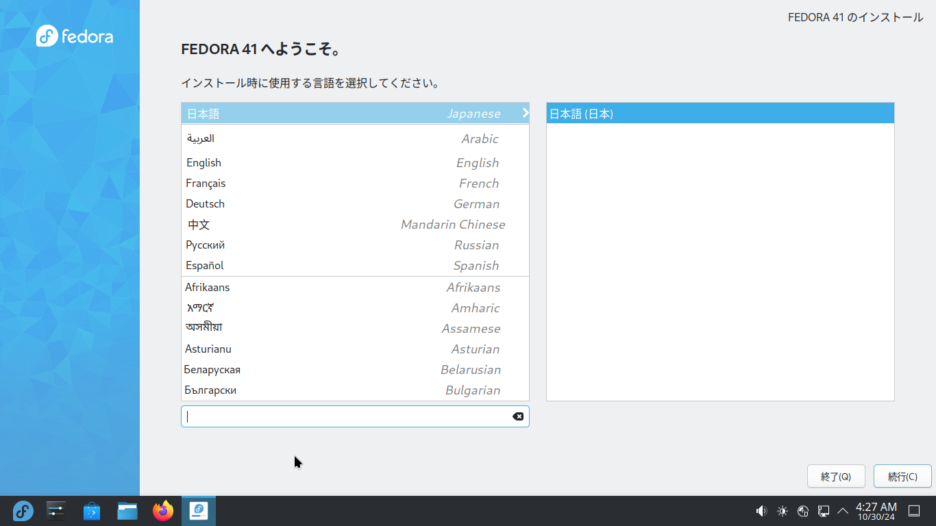 以降の手順は「Fedora - 41 - MATE」と同様となりますので、そちらをご参照ください。