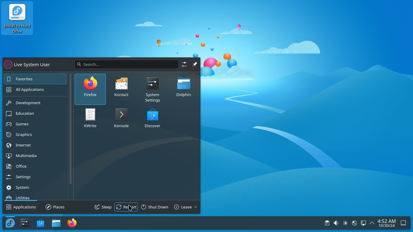 「Install to Hard Drive」ちゅうアイコンを、右クリックして、「Open with KWrite」ちゅうので開きます。