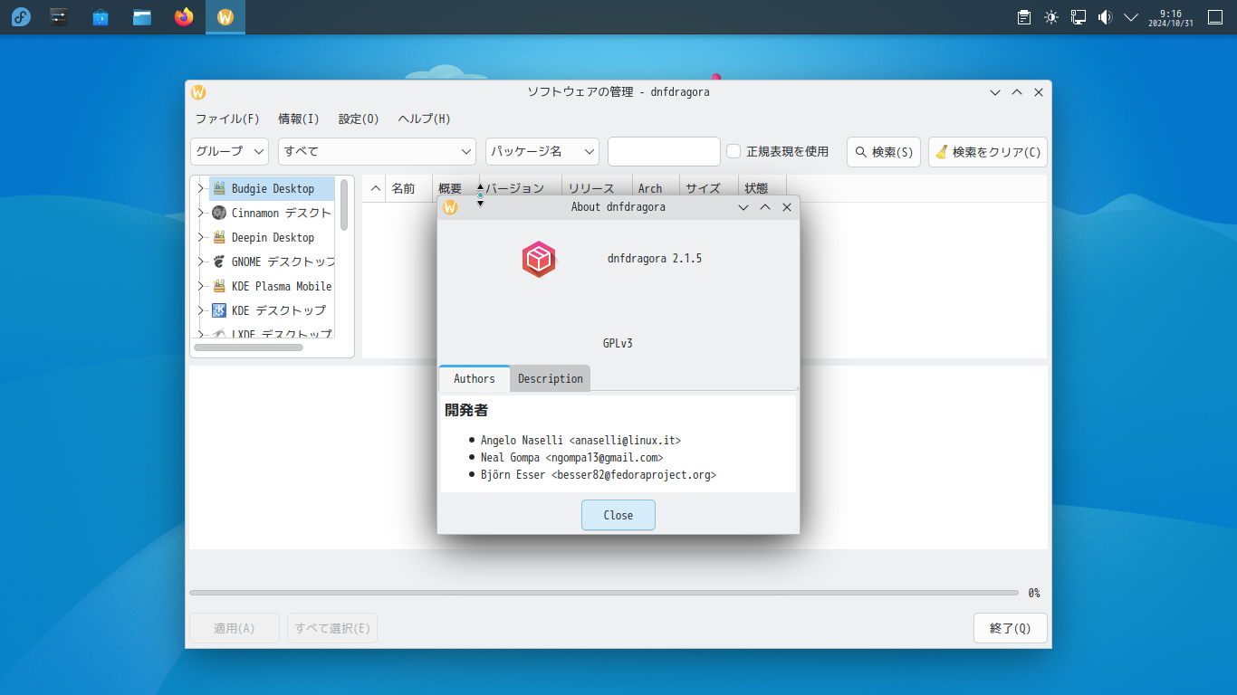 Fedora - 41 - KDE - パッケージ管理 Dnfdragora