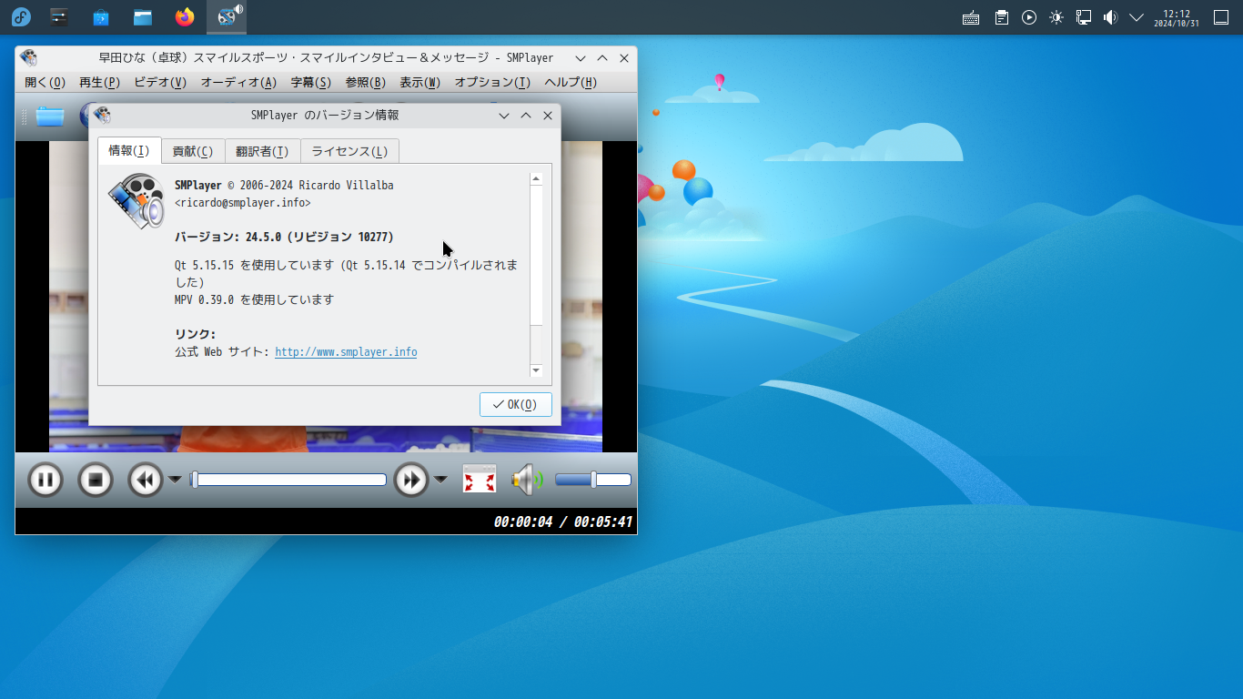 Fedora - 41 - KDE - メディアプレイヤー SMPlayer