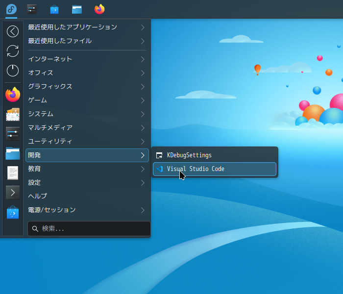 Fedora - 41 - KDE - 開発環境 Visual Studio Code