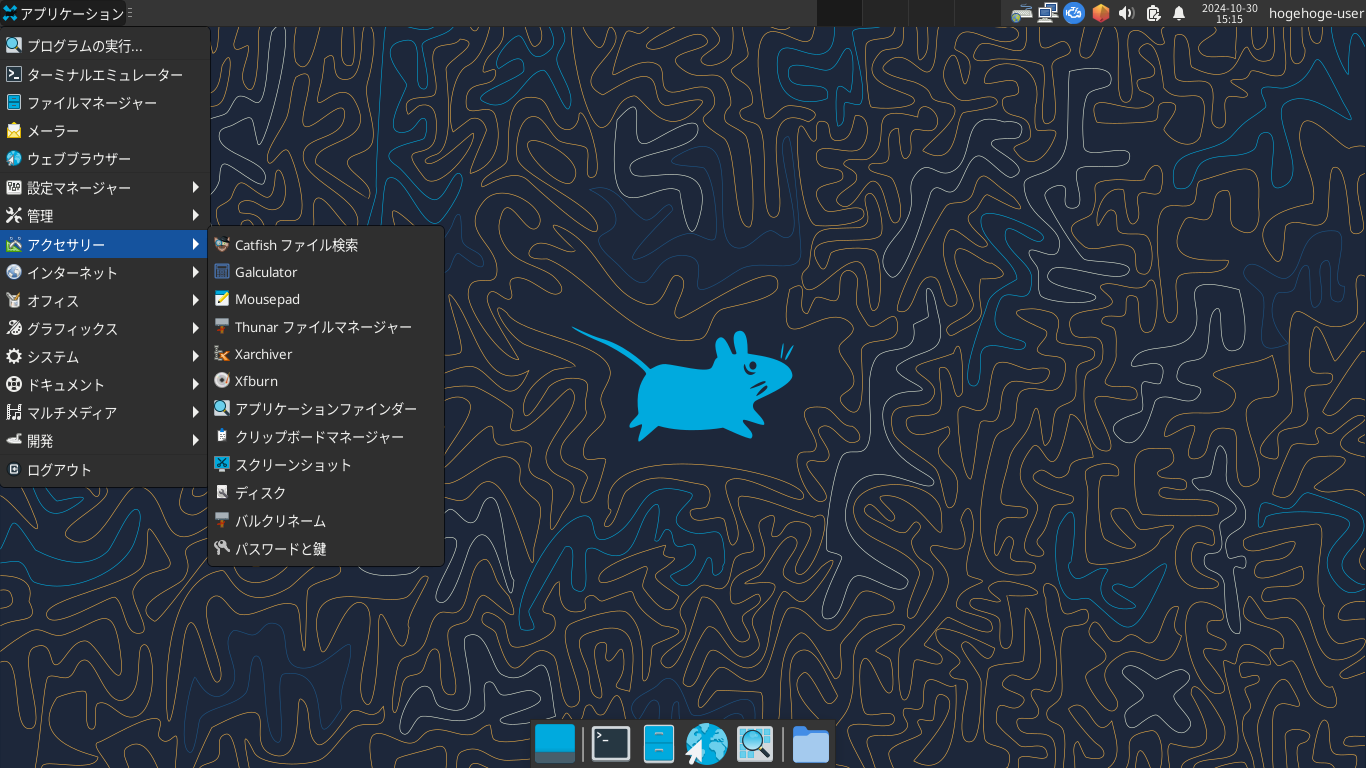 「XFCE」の共通的な操作やカスタマイズ方法については、「XFCE - 共通事項」をご参照ください。