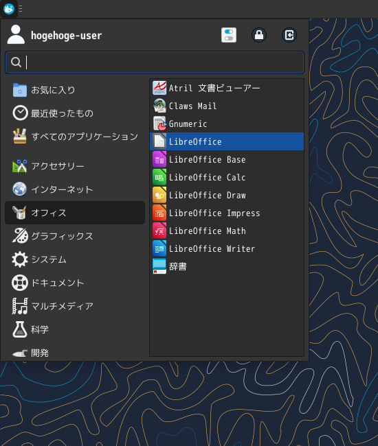1. 概要 オフィススイートとして、「LibreOffice」を使用します。 2. インストール 「LibreOffce」は、たいていデフォルトでインストールされているのですが、何故か「XFCE」では、インストールされていません。 「Dnfdragora」で「libreoffice」を検索して、「libreoffice」と「libreoffice-langpack-ja」をインストールします。 「LibreOffice Start Center」をメニューに表示させる方法に関しては、「Fedora - 41 - 共通事項」をご参照ください。 3. 起動 「スタート」→「オフィス」→「LibreOffice」