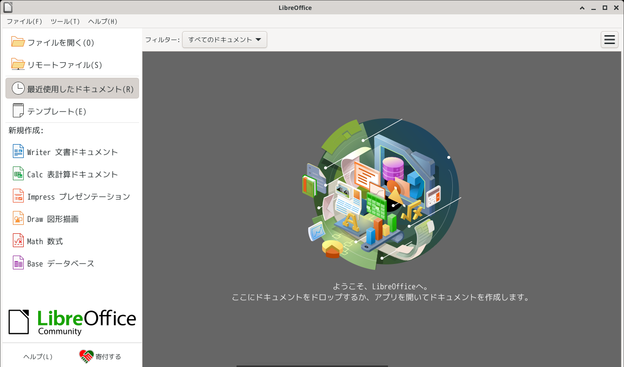 操作方法等については「オフィススィート LibreOffice」をご参照ください。