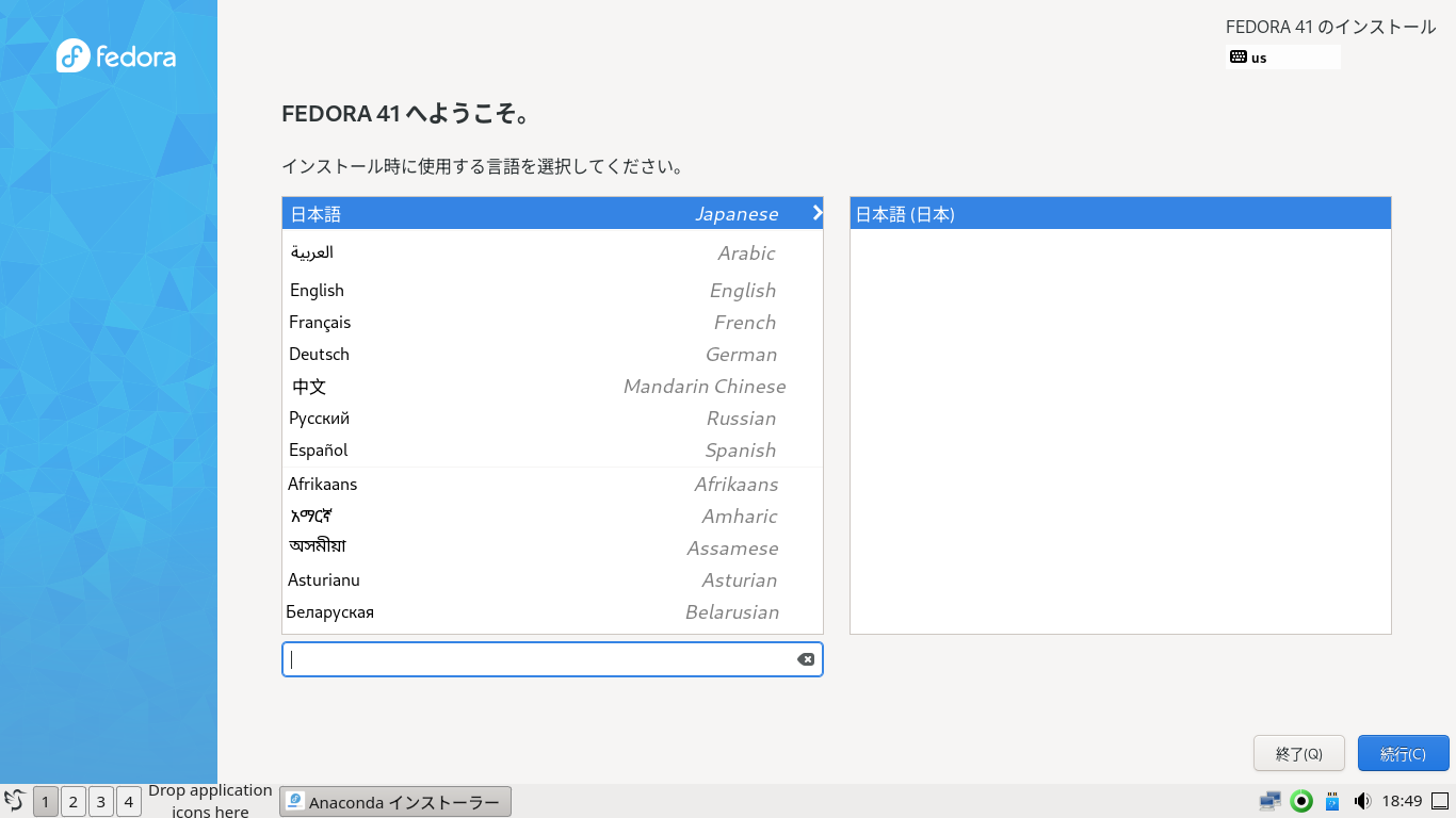 以降の手順は「Fedora - 41 - MATE」と同様となりますので、そちらをご参照ください。