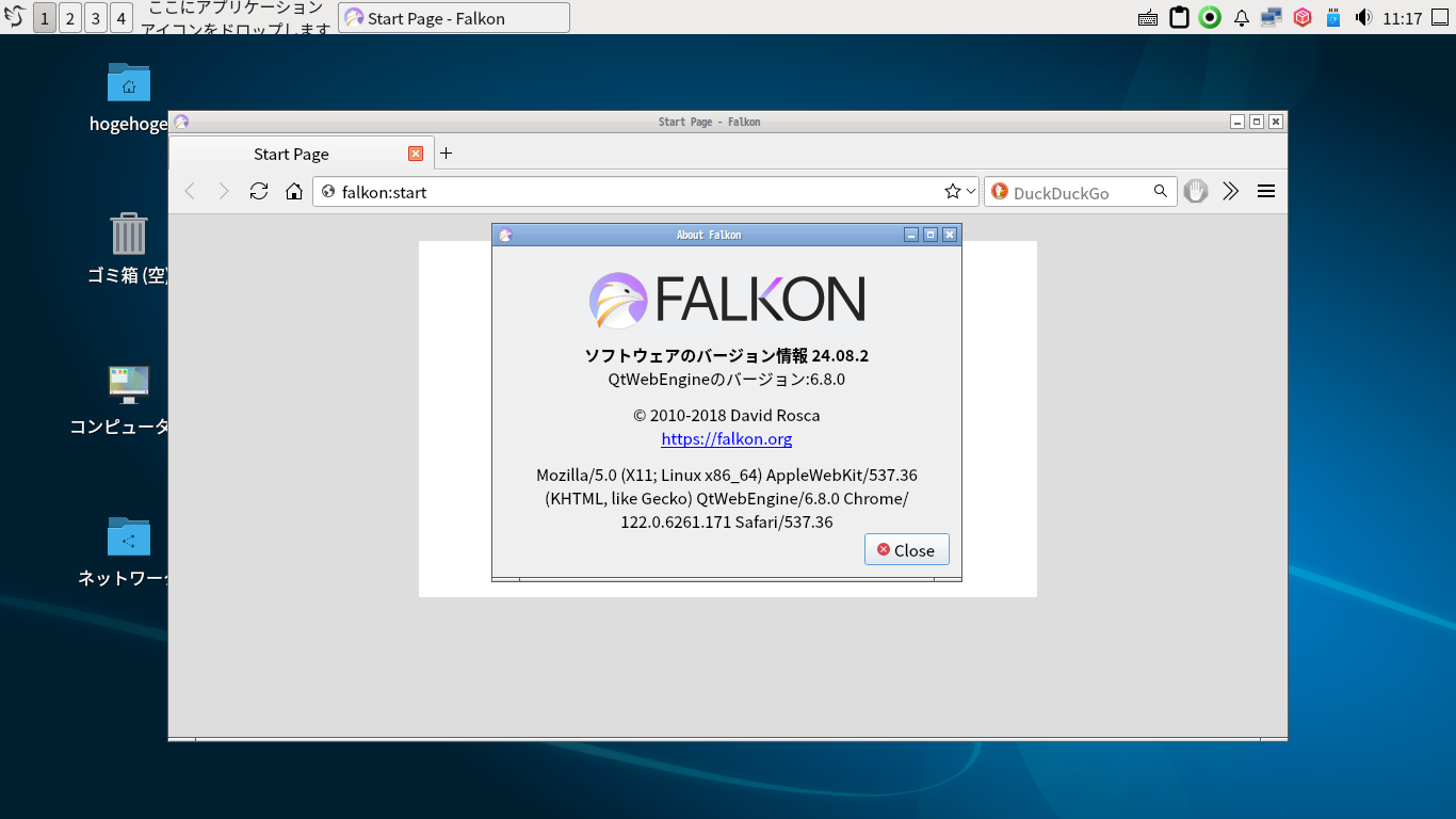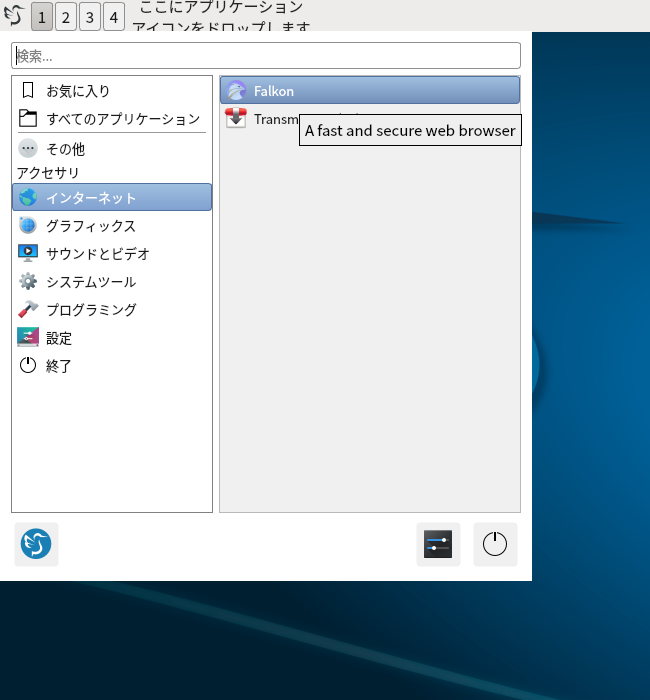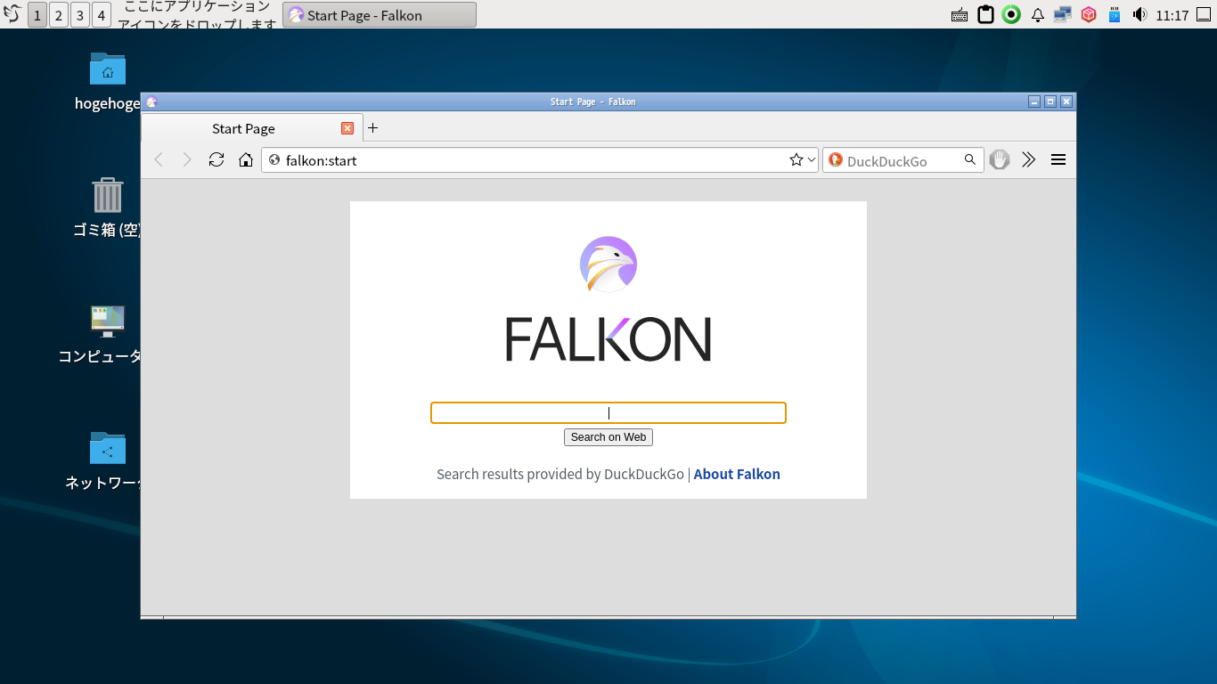 1. 概要 ブラウザとして、「Falkon」がデフォルトでインストールされています。 「Falkon」をそのまま使用します。 2. 起動 「スタート」→「インターネット」→「Falkon」