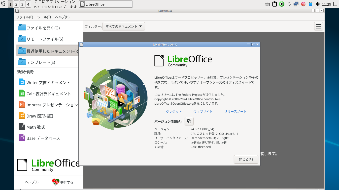 Fedora - 41 - LXQt - オフィススイート LibreOffice