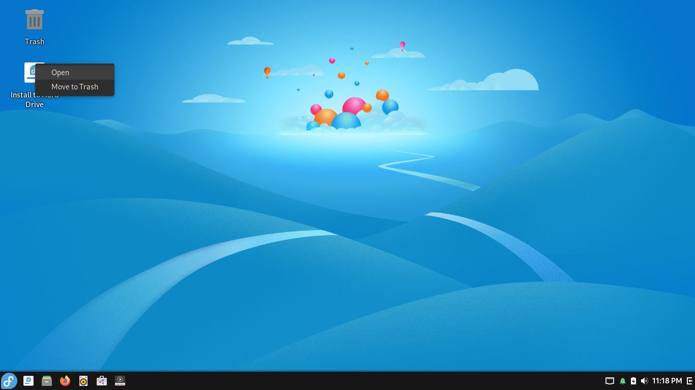 1. 概要 画面や操作が「MATE」と若干異なる部分がありますので、記載しますが、その他は「Fedora - 41 - 共通事項」のインストールの手順をご参照ください。 インストール環境についても、上記をご参照ください。 2. 起動 インストーラ起動時に、デスクトップ画面から始まります。 「Install to Hard Drive」を右クリックして 「Open」