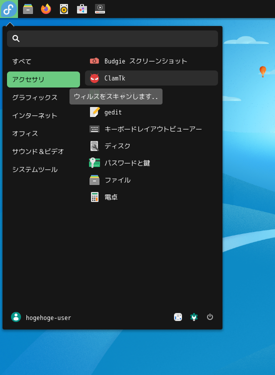 Fedora - 41 - BUDGIE - アンチウィルス ClamTk