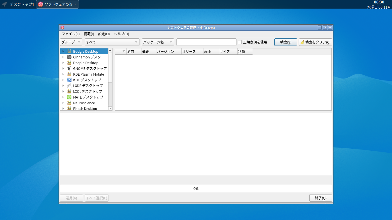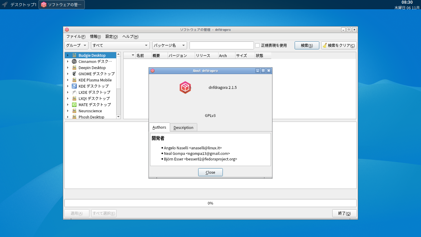 パッケージ管理フロントエンドとして「Dnfdragora」がインストールされています。