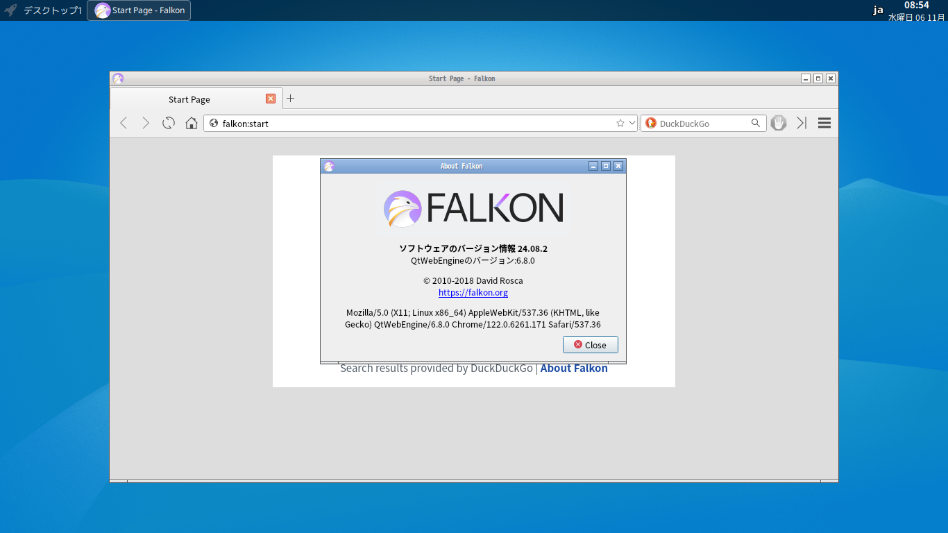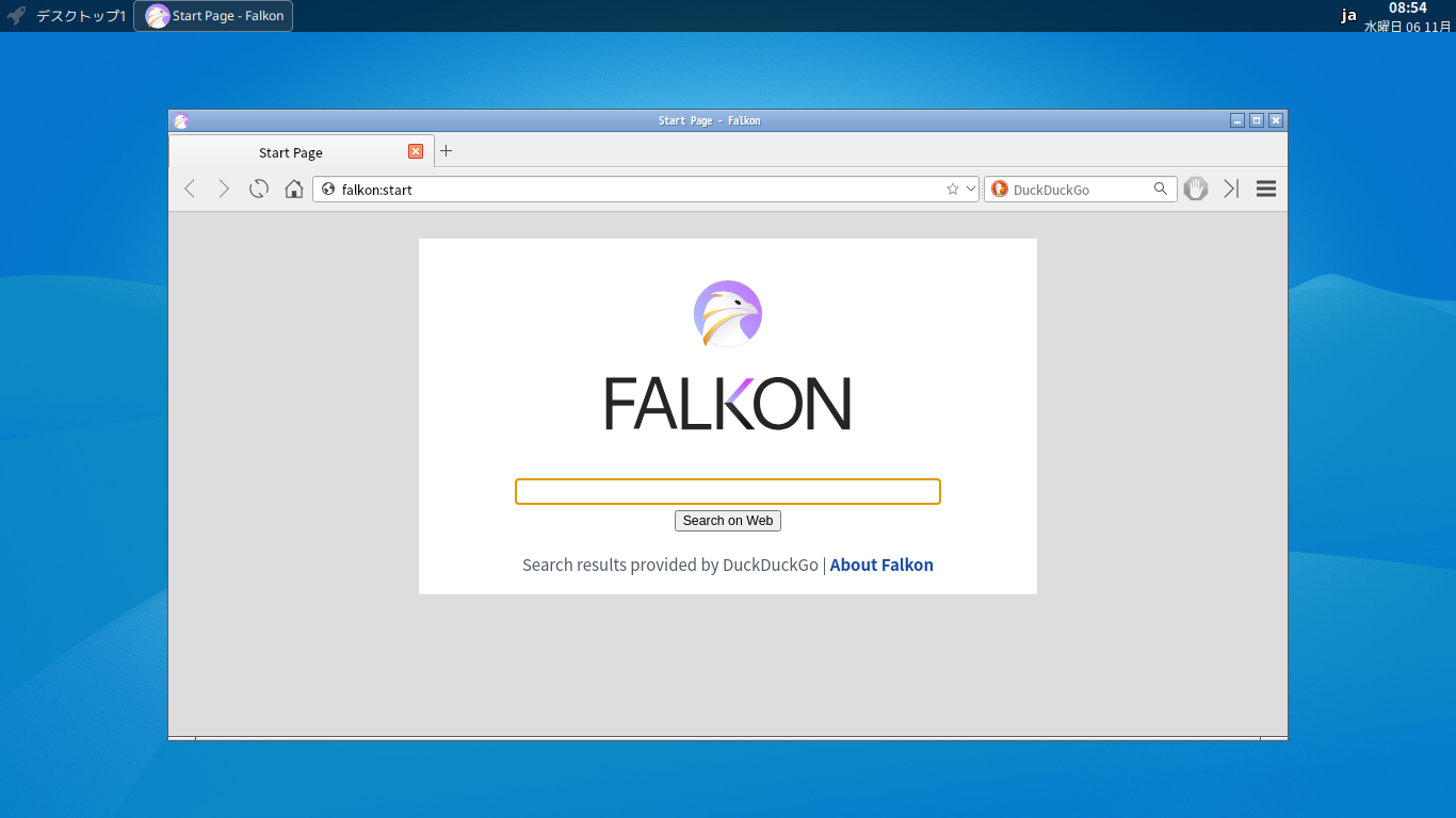 1. 概要 ブラウザとして、「Falkon」がデフォルトでインストールされています。 2. 起動 「スタート」→「インターネット」→「Falkon」