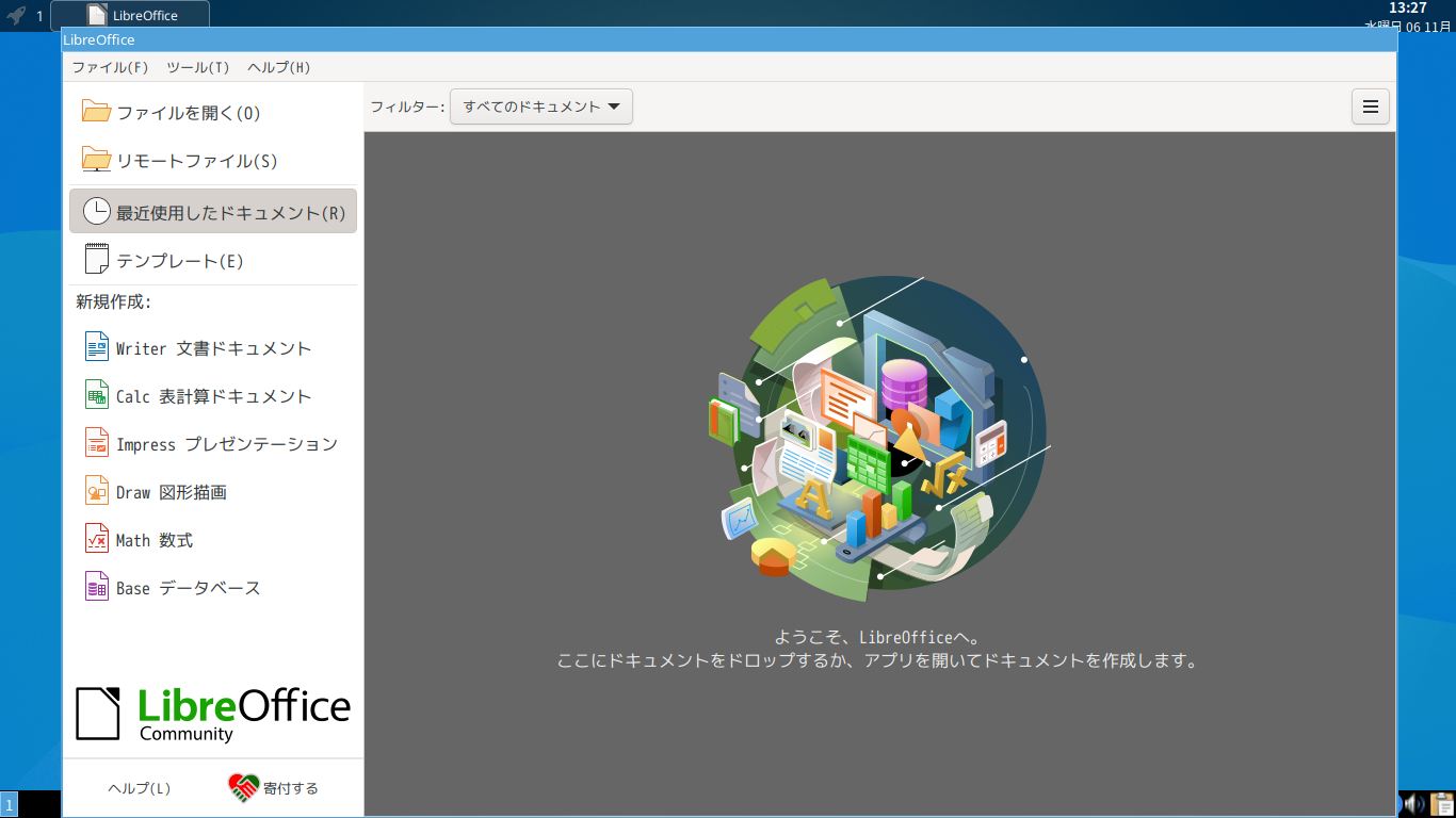 オフィススイートとして、「LibreOffice」を使用します。