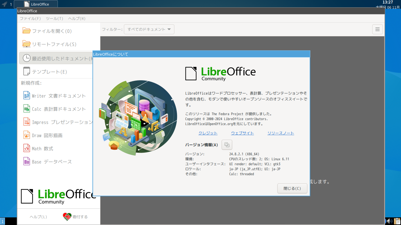 Fedora - 41 - i3wm - オフィススイート LibreOffice
