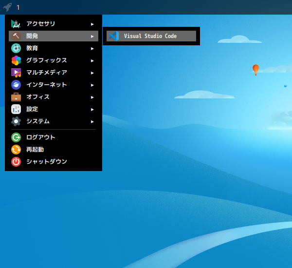 「スタート」→「開発」→「Visual Studio Code」