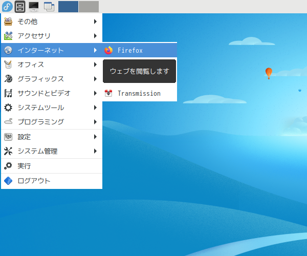1. 概要 ブラウザとして、「Firefox」がデフォルトでインストールされています。 日本語化されていますので、そのまま使います。 2. 起動 「スタート」→「インターネット」→「Firefox」