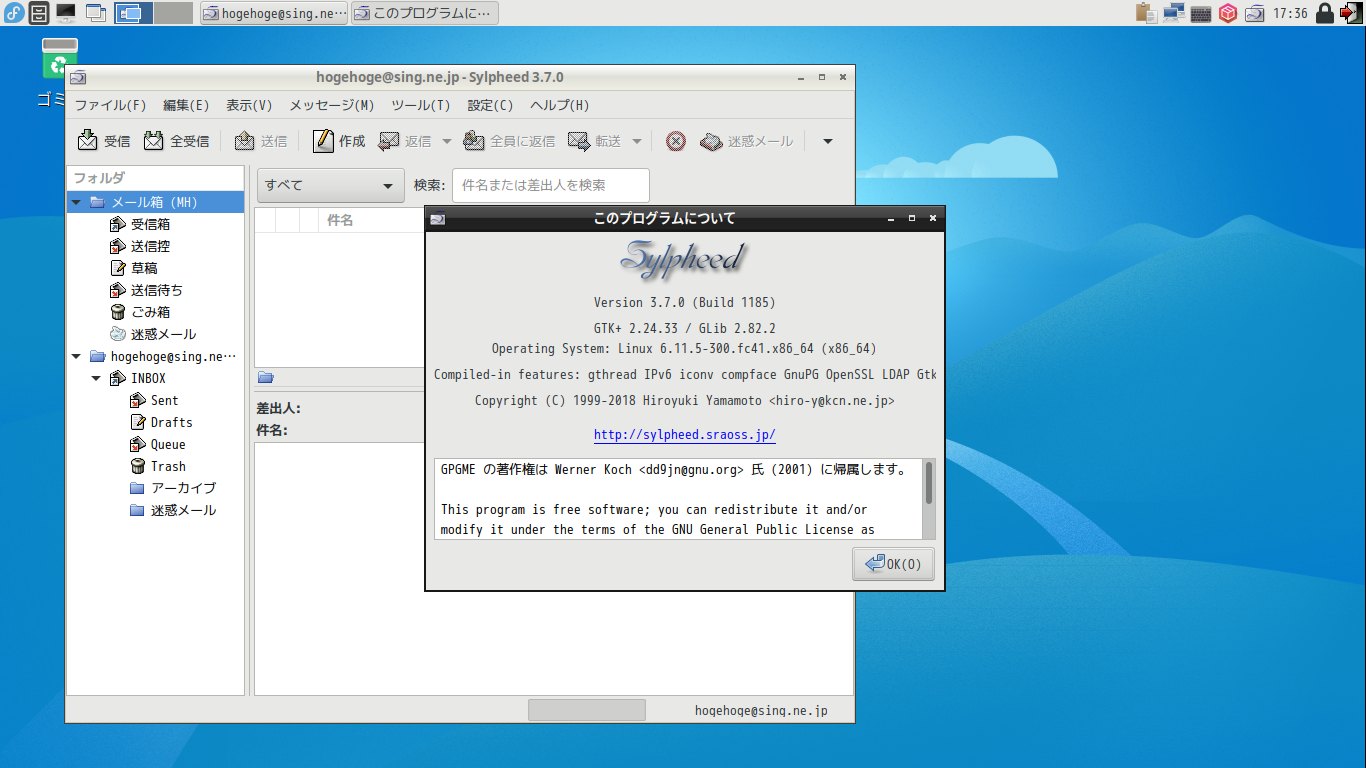 Fedora - 41 - LXDE - メールクライアント Sylpheed