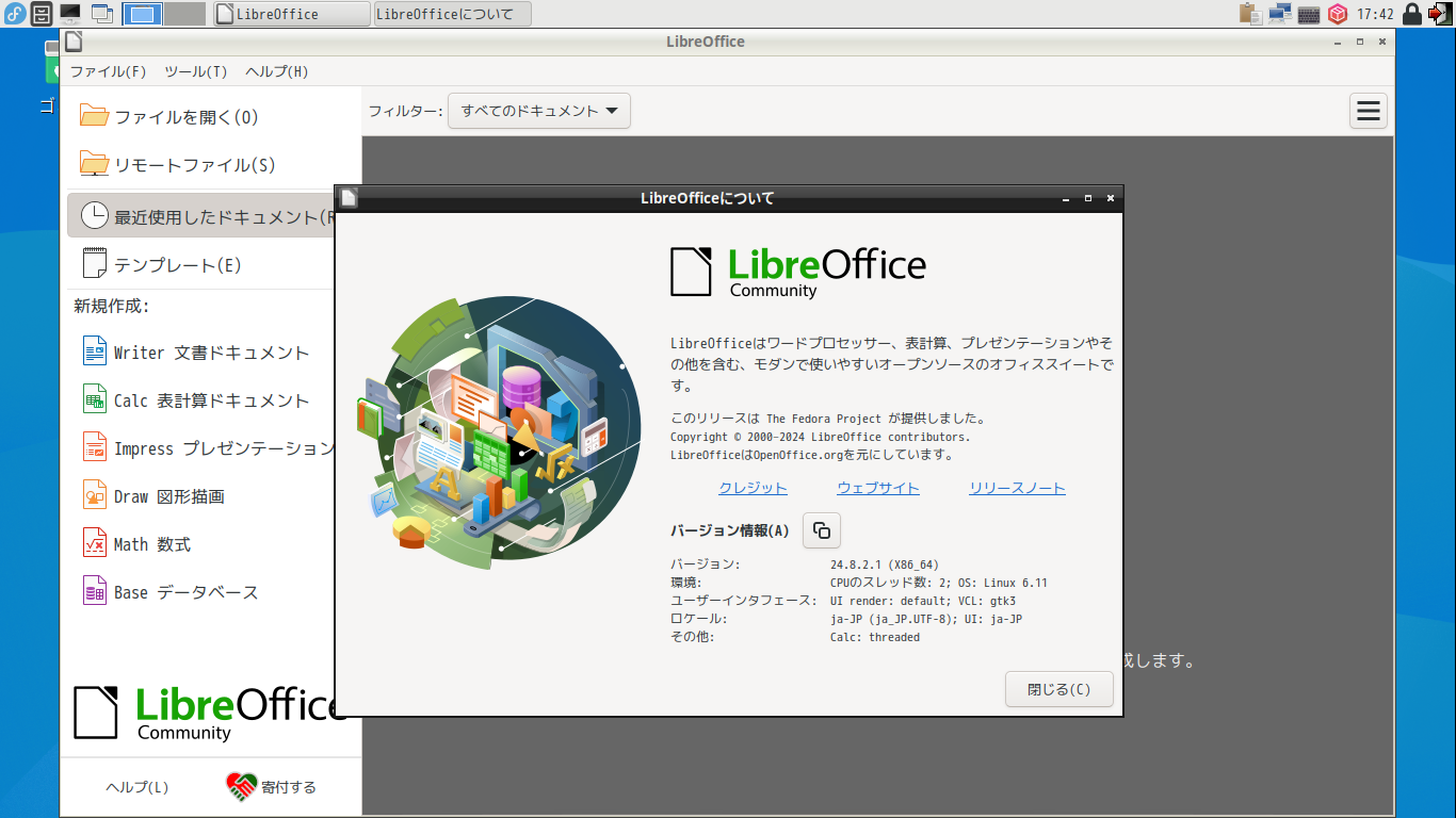 Fedora - 41 - LXDE - オフィススイート LibreOffice