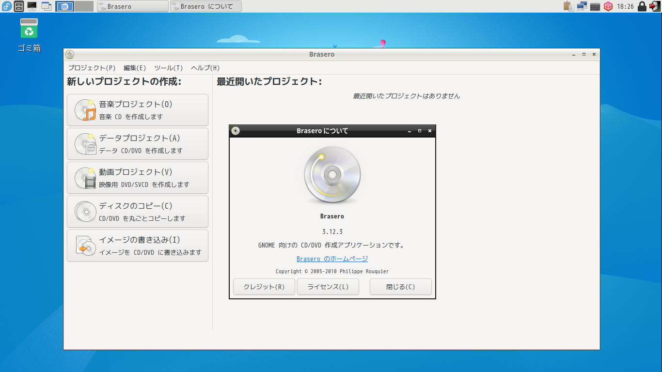 Fedora - 41 - LXDE - 光ディスクライティング Brasero
