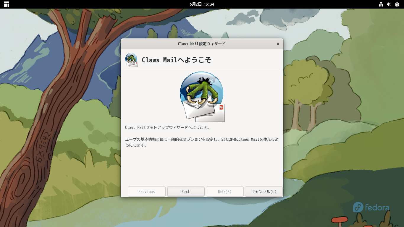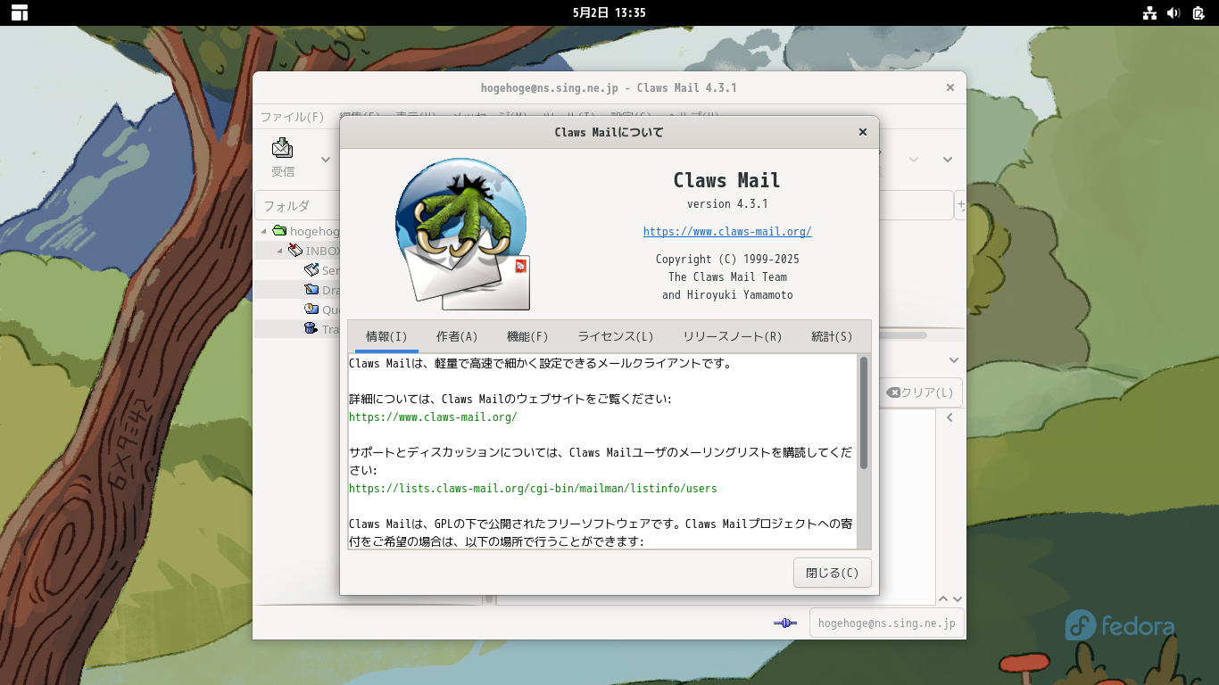 Fedora - 42 - GNOME - メールクライアント Claws Mail