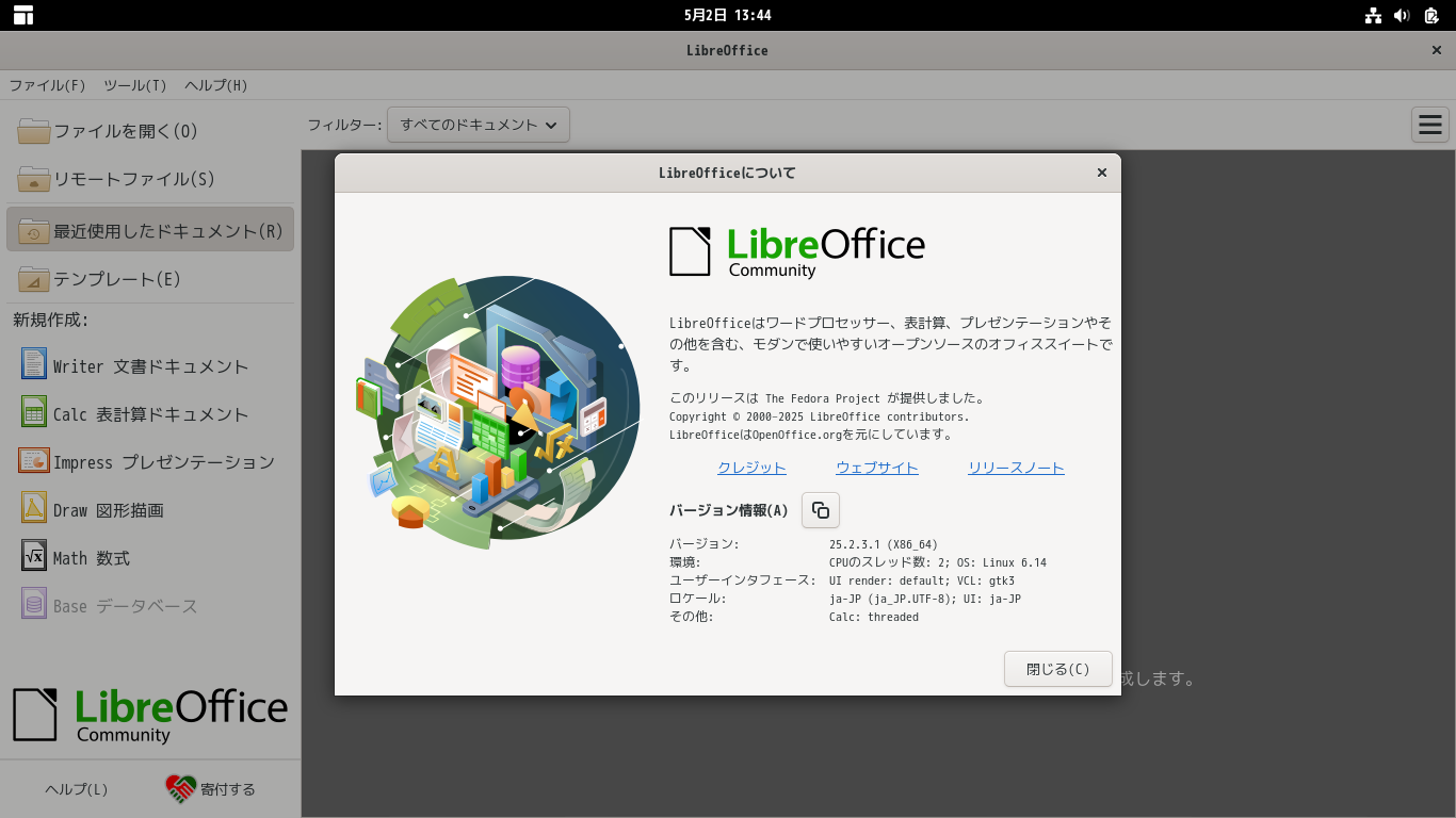 「LibreOffce」は、デフォルトでインストールされていますが、日本語化されていません。