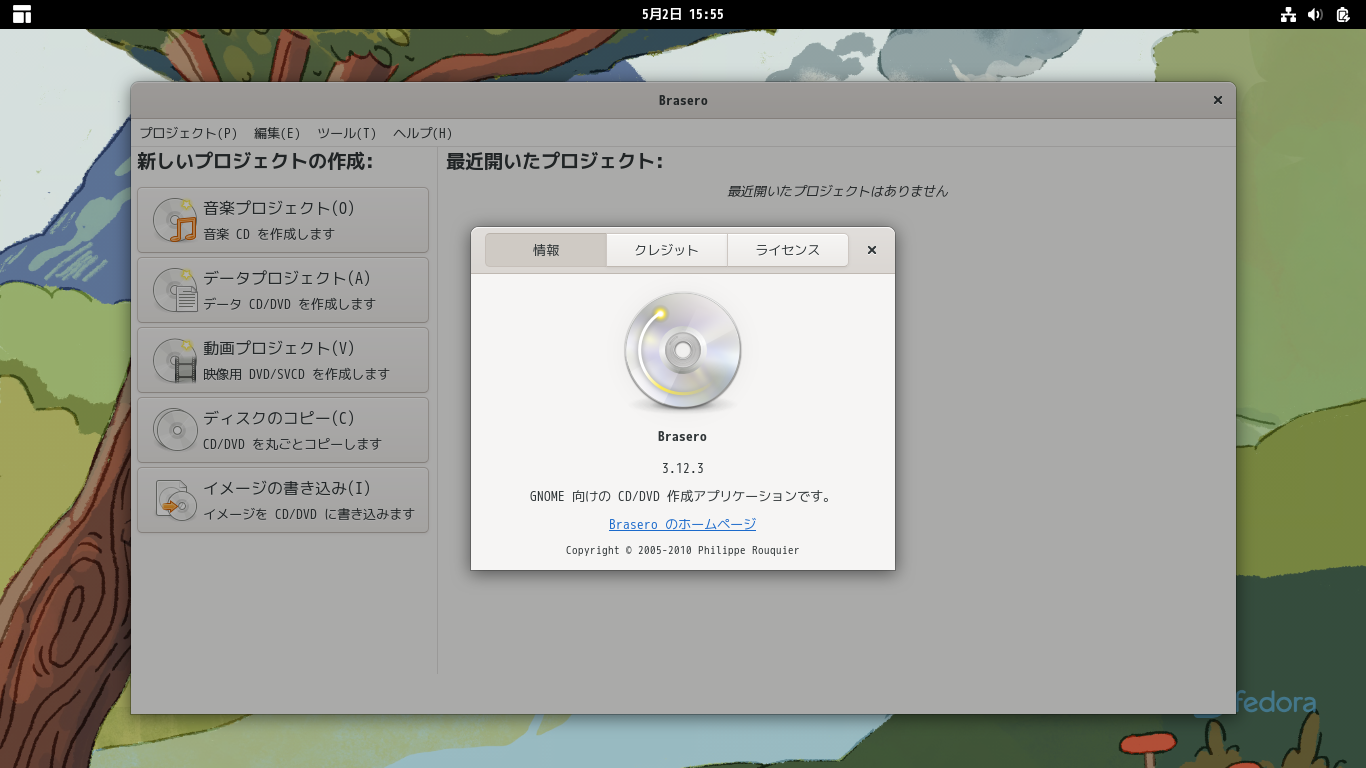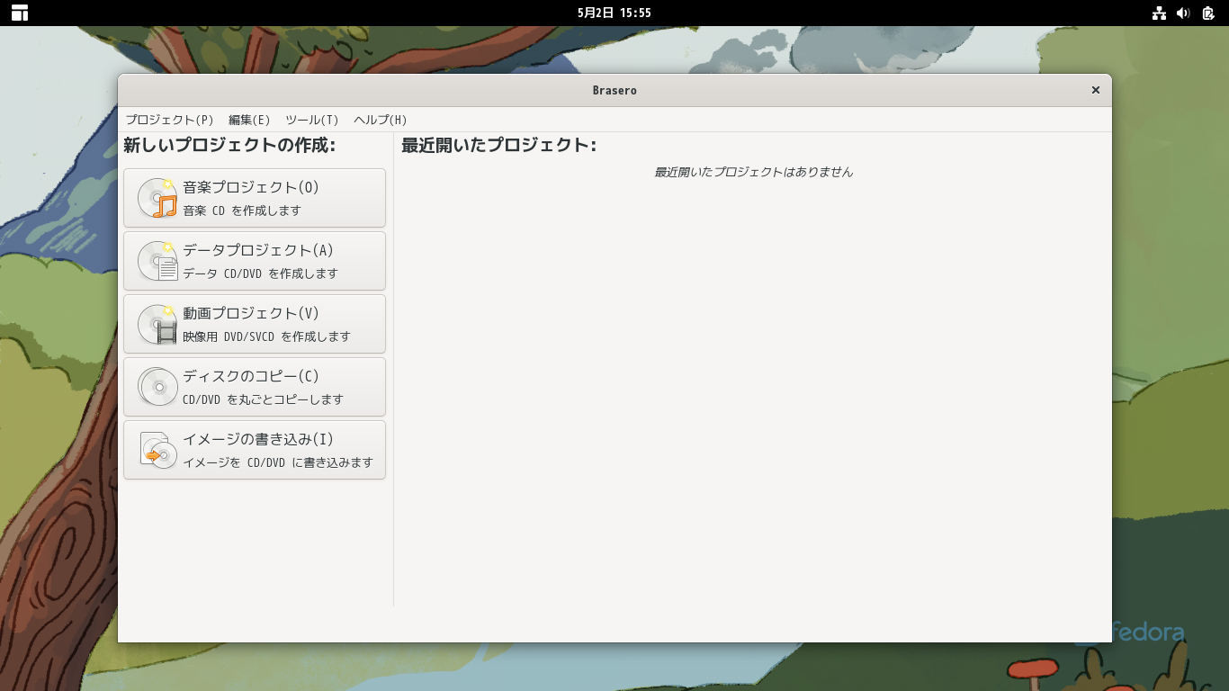 1. 概要 光ディスクライティングソフトとして「Brasero」を使用します。 2. インストール 「ソフトウェア(gnome-software)」で、「brasero」を検索して、インストールします。 3. 起動 「スタート」→「B」→「Brasero」