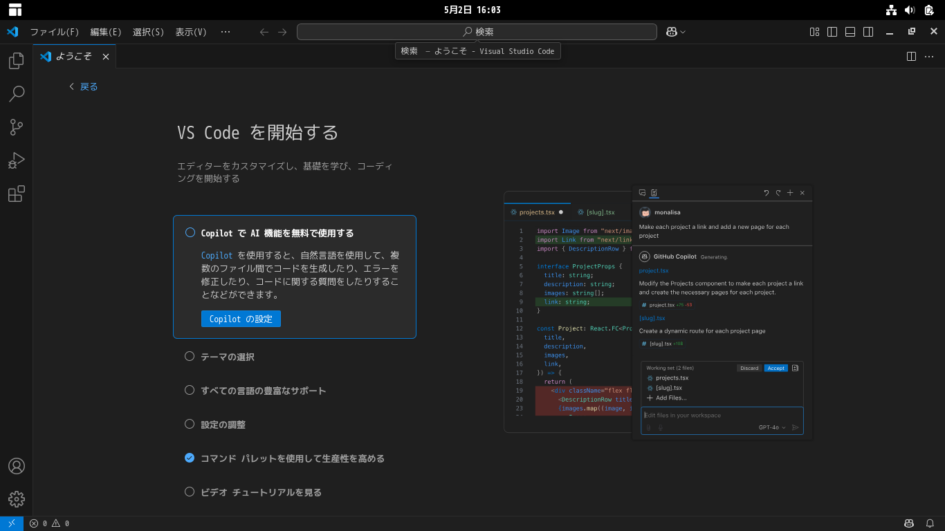 いつもは。ログインしなおさないと、メニューへ組み込まれないのですが、今回は、インストール直後に、メニューへ組み込まれていました。