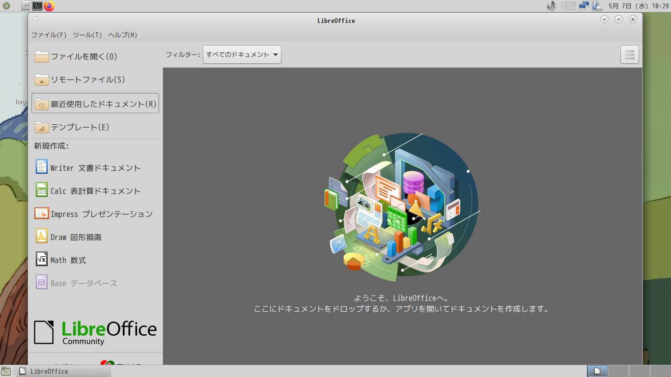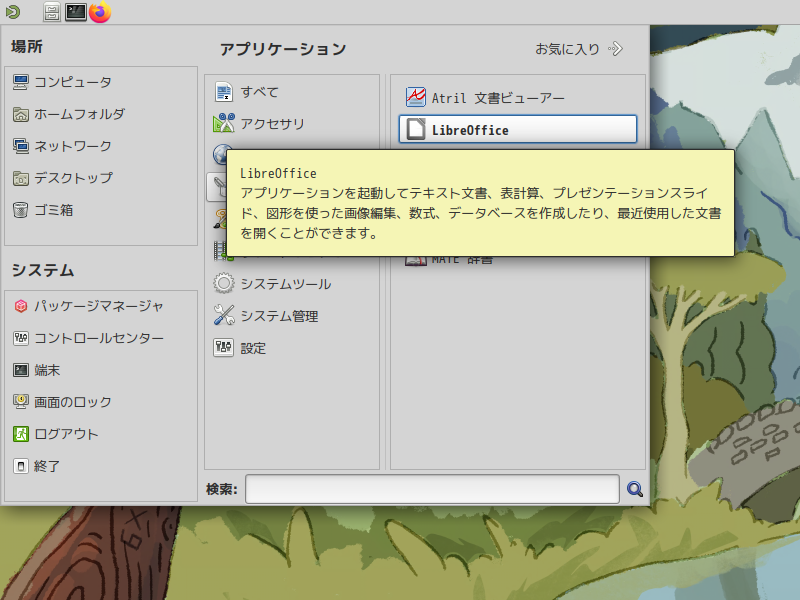 「LibreOffce」はデフォルトでインストールされていますが、日本語化されていません。