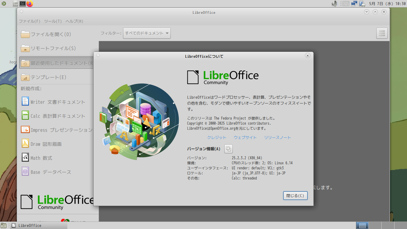 オフィススイートとして、「LibreOffice」を使用します。
