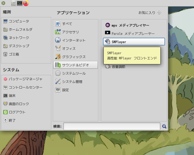メディアプレイヤーとして、「Parole」というプレイヤーがインストールされていますが、使い慣れている「SMPlayer」ををインストールして使います。