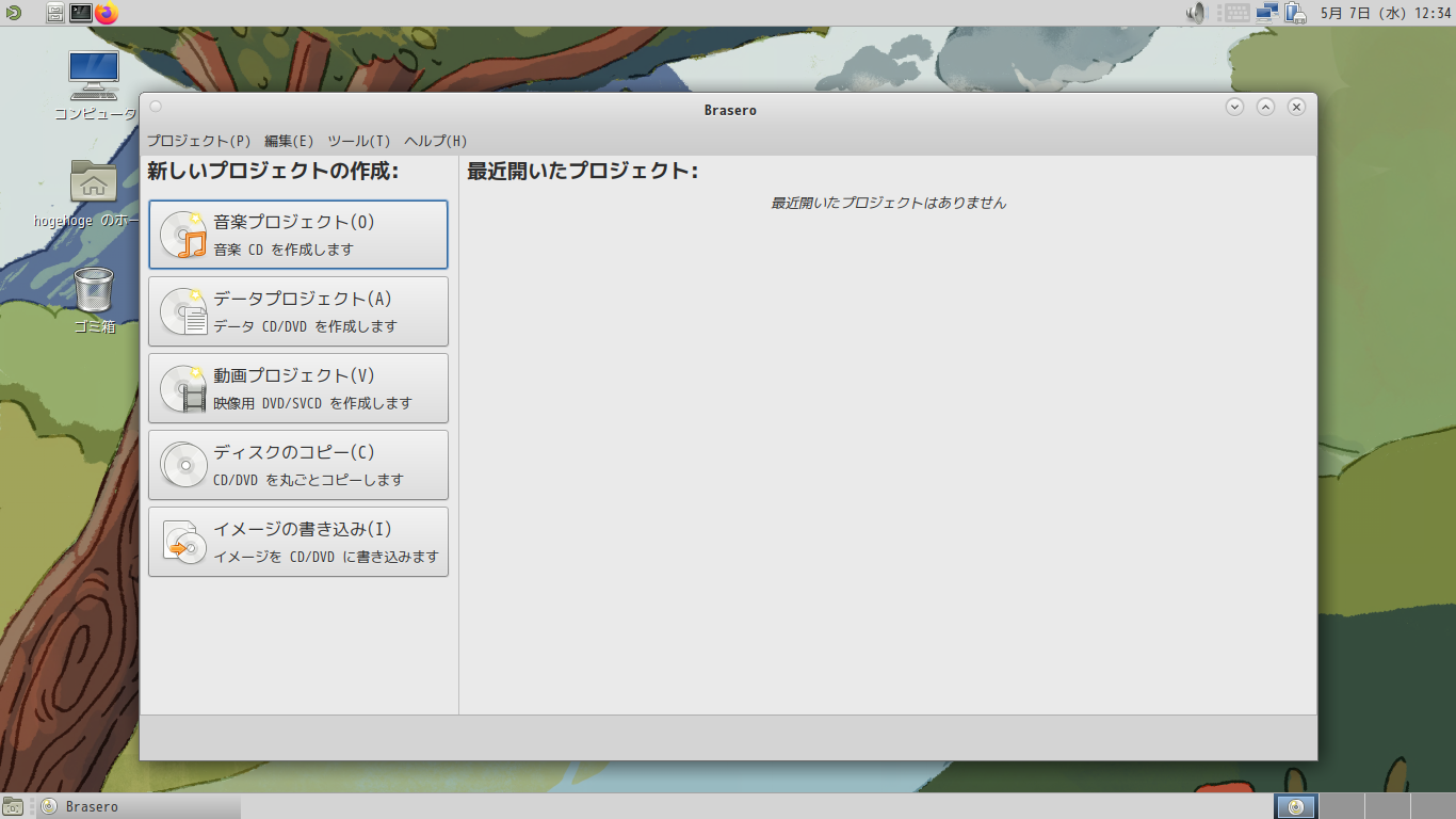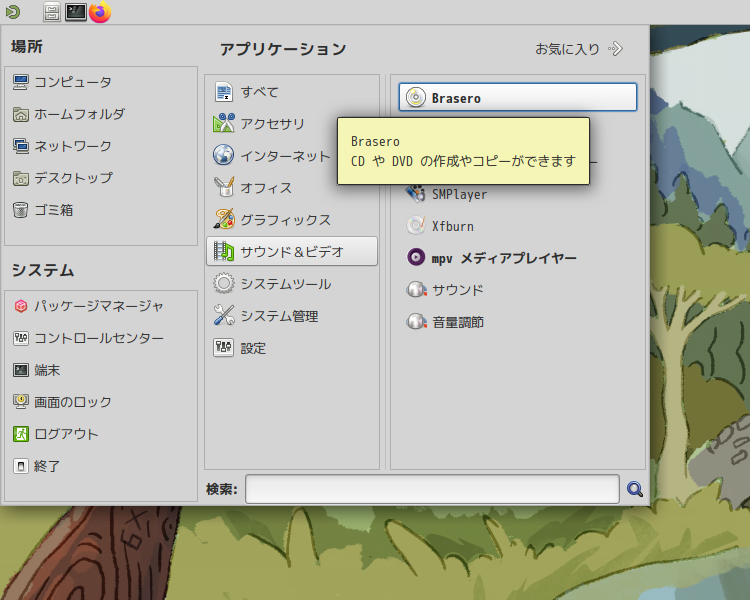 1. 概要 光ディスクライティングソフトとして、「Brasero」を使用します。 2. インストール 「dnfdragora」で、「brasero」を検索して、インストールします。 3. 起動 「スタート」→「サウンドとビデオ」→「Brasero」