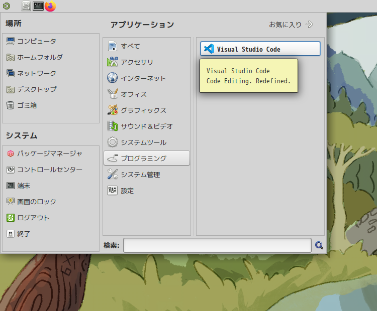 「スタート」→「プログラミング」→「Visual Studio Code」