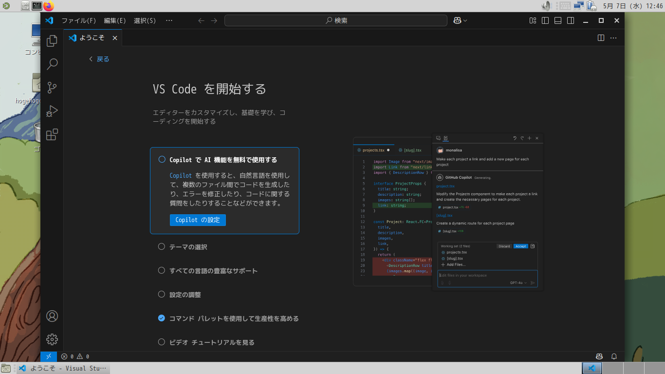 日本語化後に、起動した直後の状態です。