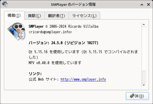 1. 概要 メディアプレイヤーとして、「SMPlayer」をインストールして使用します。 2. インストール 「SMPlayer」のインストールには、「unitedrpms」というリポジトリを追加する必要があります。 リポジトリ追加の手順に関しては、「Fedora - 42 - 共通事項」をご参照ください。 リポジトリを追加したら、「root」ユーザ権限で。 dnf install -y smplayer openh264 3. 起動 「スタート」→「マルチメディア」→「SMPlayer」