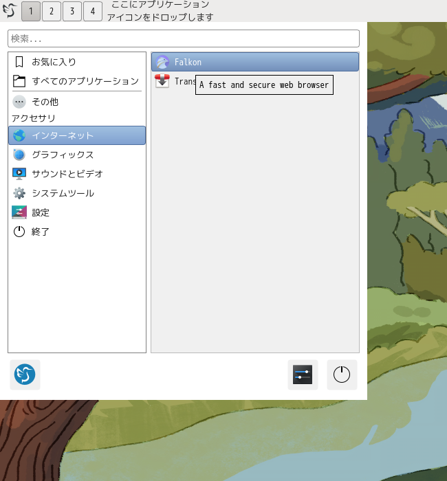 1. 概要 ブラウザとして、「Falkon」がデフォルトでインストールされています。 「Falkon」をそのまま使用します。 2. 起動 「スタート」→「インターネット」→「Falkon」
