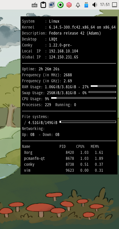再ログイン後に、デスクトップ右に、「Conky」の表示が現れます。