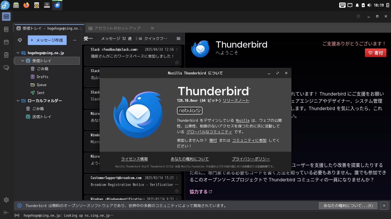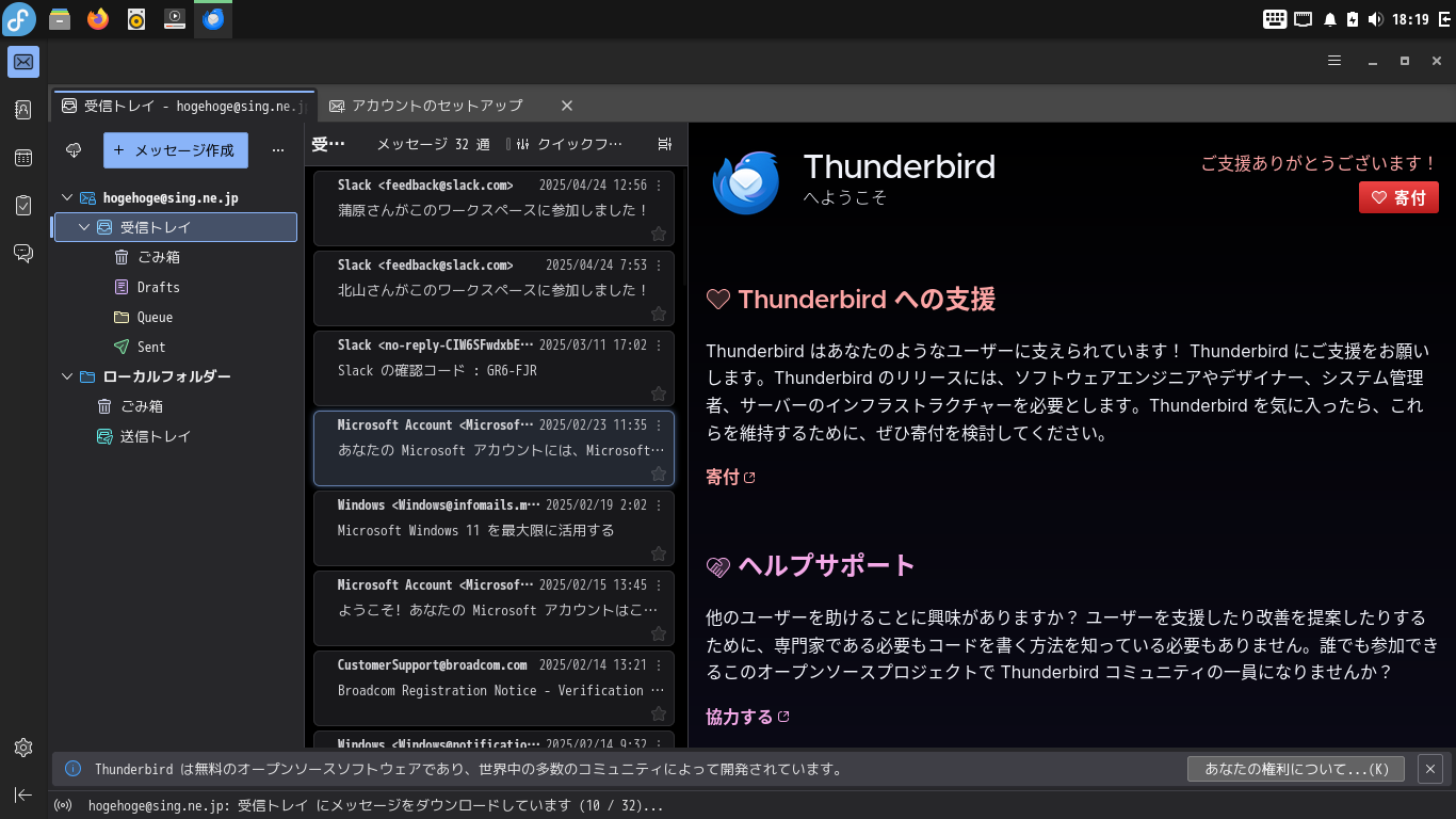 Fedora - 42 - BUDGIE - メールクライアント Thunderbird