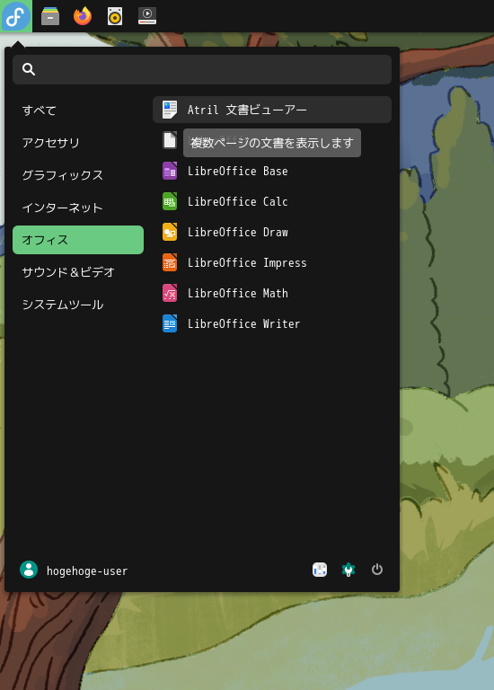 1. 概要 ドキュメントビューアとして、「Atril」を使用します。 「Atril」は、デフォルトでインストールされています。 2. 起動 「スタート」→「オフィス」→「Atril」