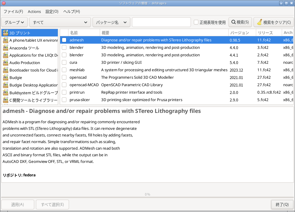 このキャプチャをとる際は、「dnfdragora」が、うまく起動してくれましたが、よく起動中のまま、固まってしまうので、あまり使えません。