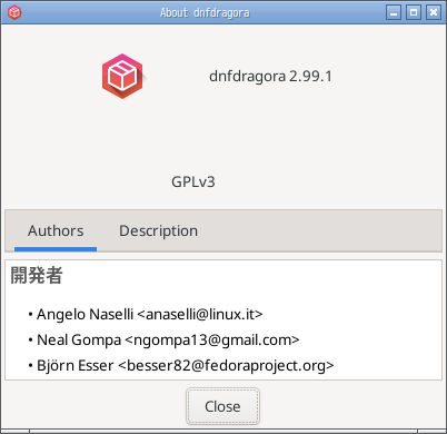 パッケージ管理フロントエンドとして「Dnfdragora」がインストールされています。
