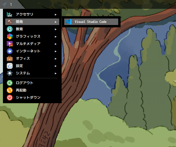 ちょっと変則的なインストールのためか、ログインしなおさないと、メニューへ表示されないデスクトップもありますが、「i3wm」では、そのままメニューへ組み込まれました。