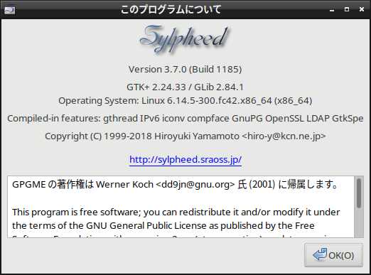 Fedora - 42 - LXDE - メールクライアント Sylpheed
