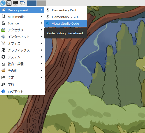 ちょっと変則的なインストールのためか、ログインしなおさないと、メニューへ表示されないデスクトップもありますが、「LXDE」では、そのままメニューへ組み込まれました。