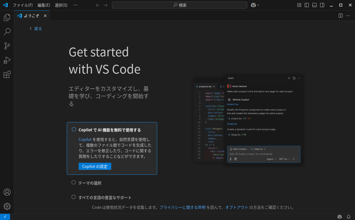 開発環境として、「Visual Studio Code」を使用します。