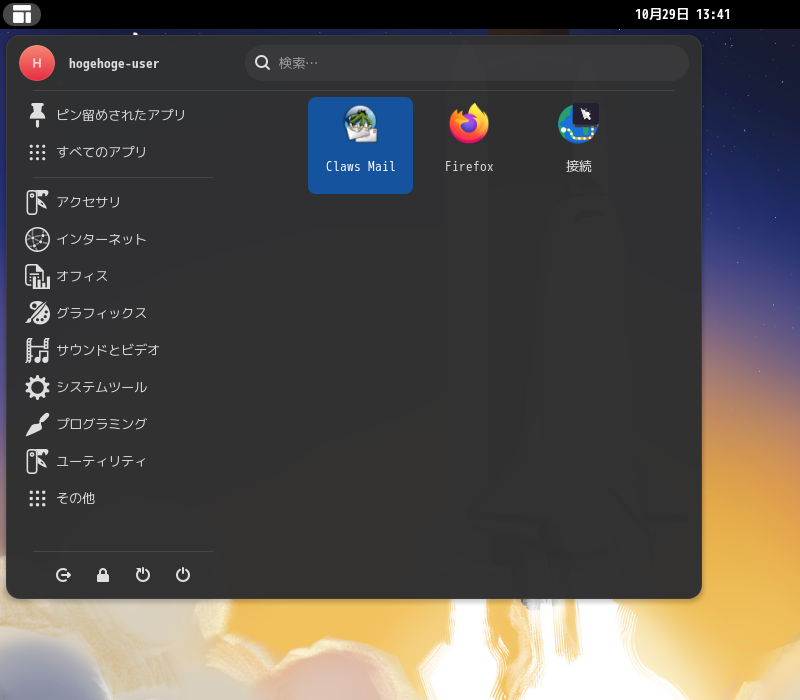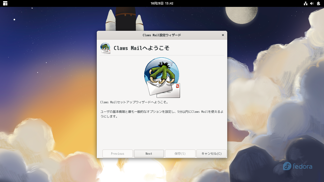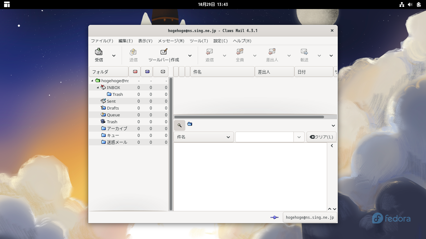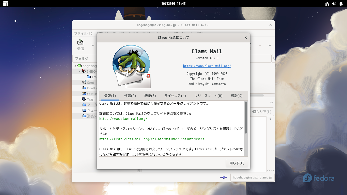 Fedora - 43 - GNOME - メールクライアント Claws Mail