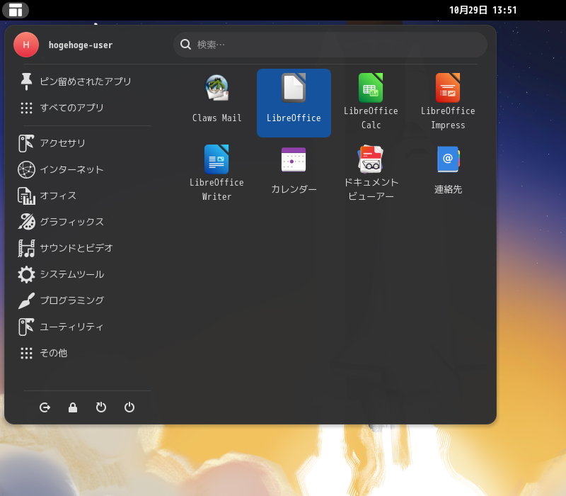「LibreOffce」は、デフォルトでインストールされています。
